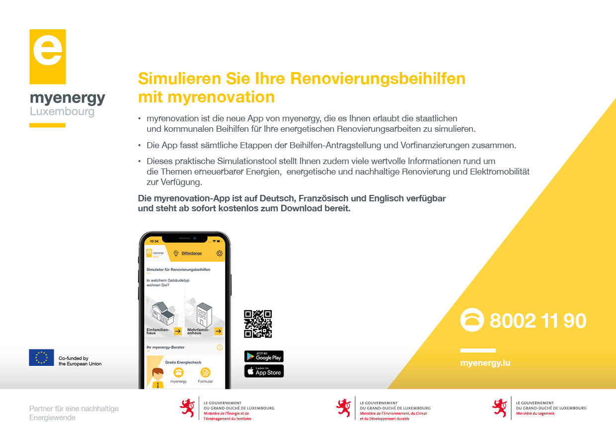 La nouvelle application de myenergy vous permet de simuler le montant des aides étatiques et communales pour votre projet de rénovation énergétique.