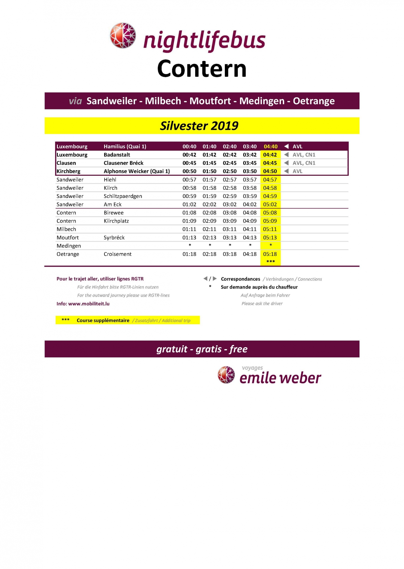 Nightlifebus Contern : Horaire réveillon de la Saint-Sylvestre