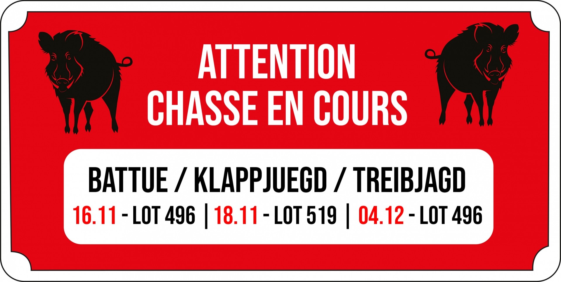 Des chasses en battue sont prévues les dates suivantes sur le territoire de la commune de Sandweiler :