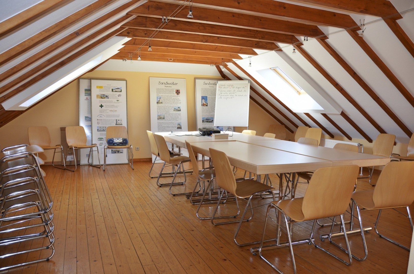 Au premier étage se trouve la salle de l'association "Santwilre".