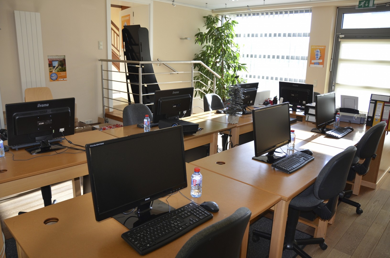 "L'internetstuff" Sandweiler se situe au "Poleschgaasshaus". La salle comporte 6 ordinateurs équipés de Windows 10 et Office 2016 en langue française, allemande et anglaise. Des impressions noir/blanc sont possibles à partir de chaque ordinateur. Elle dispose d'un accès pour personnes à mobilité réduite. La gestion administrative quotidienne et les cours sont assurés par un salarié du CIGR Syrdall qui fixe aussi les plages horaires.