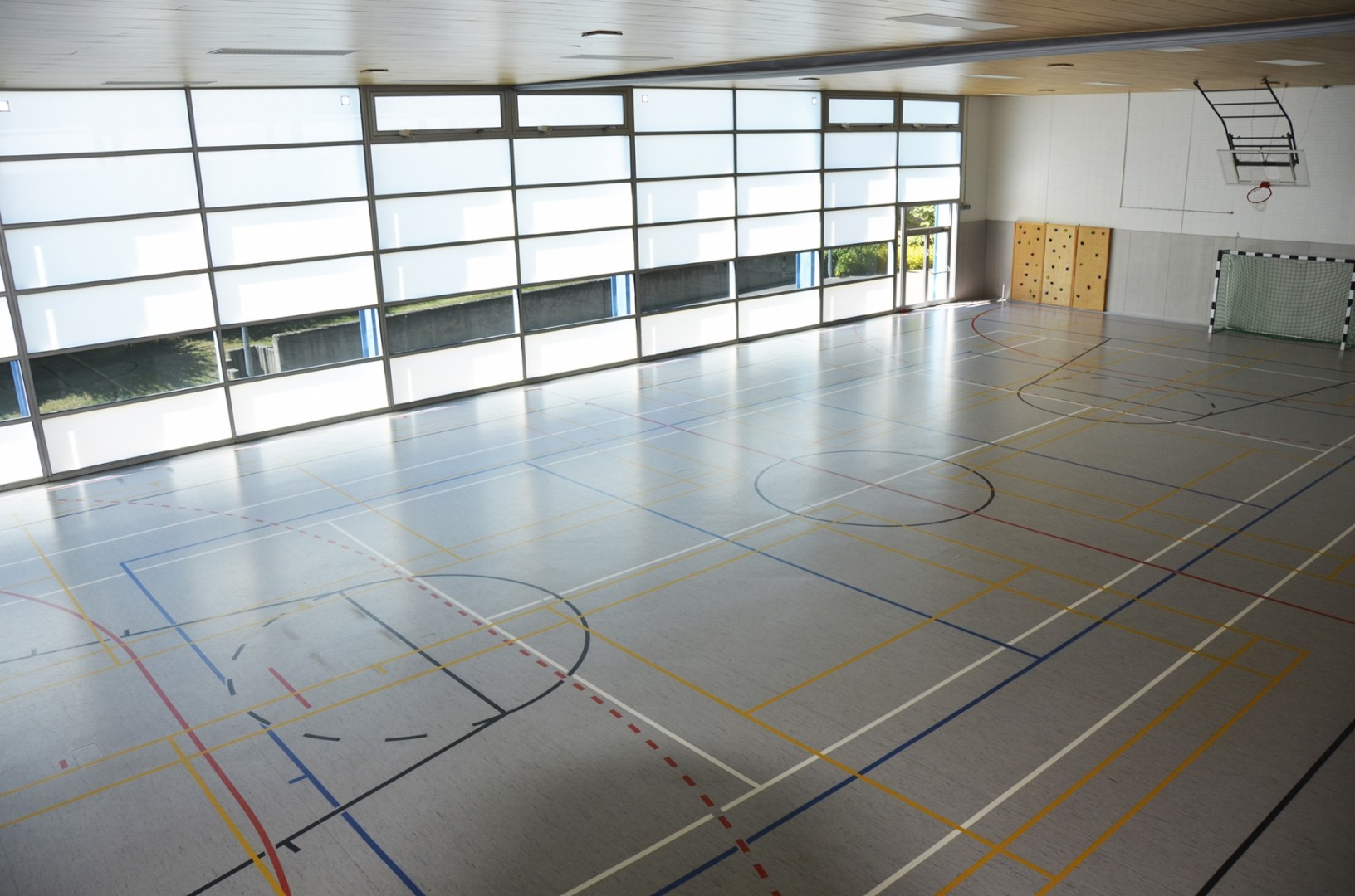 Avec une surface de 33 mètres sur 17 mètres, le hall est utilisé par les associations locales ainsi que les enfants de l'Ecole um Weier.